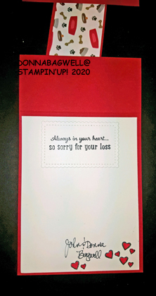 I recently saw a Cut Away card made by Julie Davison, and knew I had to make one. A friend recently lost her dog, and I have been wanting to make a sympathy card for her. I had not used my new Pampered Pets stamp set yet, and decided the Pampered Pets would be perfect to make my first Cut Away card. Surprise – this card was so easy to make.