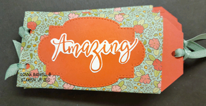 I used retired Designer Series Papers to decorate my albums, but also used current product. I used the stamp set Create With Friends (page 36 in the 2021 Annual Catalog) for the “Amazing” greeting (I hand cut the word), and Peaceful Moments (page 24) for “Congratulations”. I also used the following dies: Stitched So Sweetly for the “Amazing” album, page 166 ; for the “Congratulations” album I used the Tasteful Labels Dies (page 165) & the Stitched Rectangles Dies (page 166).